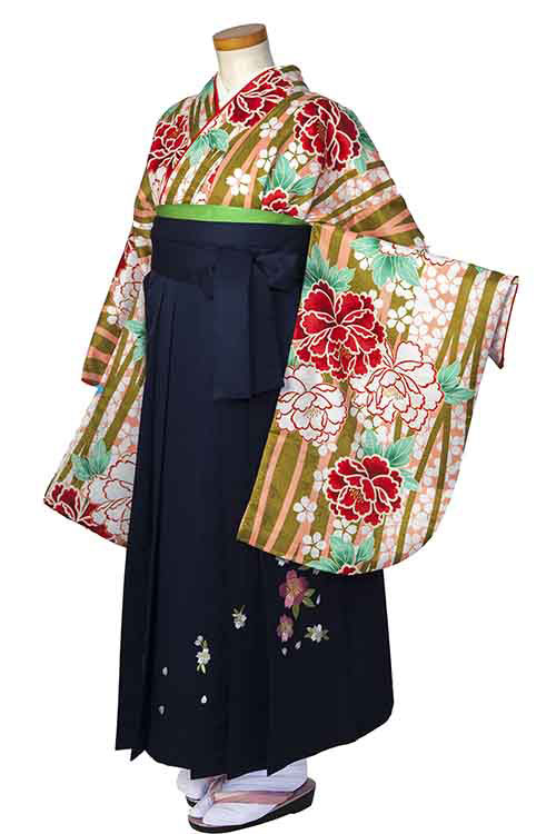 きもの(小振袖)、長襦袢、袴、袴下帯、半衿、伊達衿、草履、巾着、帯板、腰紐、伊達〆、着付け小物